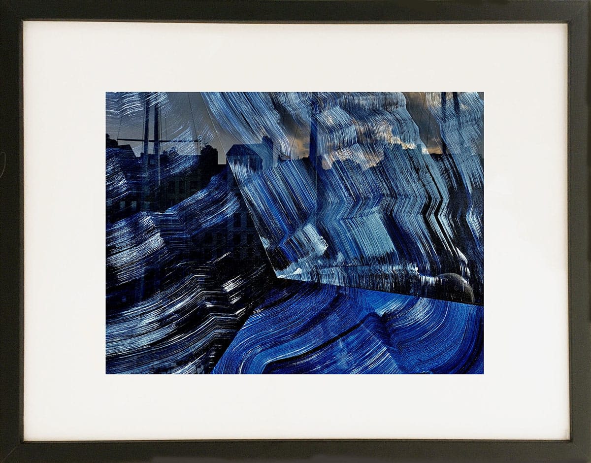 Dans cette pièce intitulée "Chiste marin", l’artiste Marick nous convie à une dérive onirique où la frontière entre photographie et peinture s'efface avec une élégance rare. À travers une gestualité vibrante, la matière bleue vient ici transfigurer le paysage urbain en une marine abstraite et profonde. C’est une œuvre de textures et de reflets, qui ne se contente pas de capturer le réel, mais le réinvente avec une subtilité presque poétique. Une composition saisissante où le mouvement devient une émotion pure. Technique : Tirage photographique Support : Papier 2 dimensions (encadré) : 30 x 40 cm Cadre : cadre noir, passe-partout sans verre